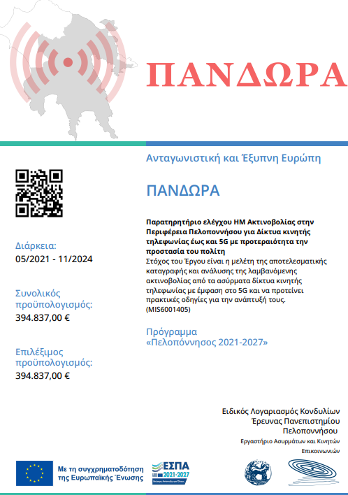 (MIS 6001405) ΠΑΝΔΩΡΑ Παρατηρητήριο ελέγχου ΗΜ Ακτινοβολίας στην Περιφέρεια Πελοποννήσου για Δίκτυα κινητής τηλεφωνίας έως και 5G με προτεραιότητα την προστασία του πολίτη